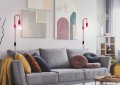 Červená nástenná lampa s jedným svetelným zdrojom. Žiarovka nie je súčasťou balenia produktu s externým zdrojom svetla.