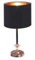 Tajomná elegancia: atmosférická čierna v kombinácii s meďou. Tienidlo na lampu s lesklým medeným vnútrom. Jednoduchý čierny podstavec s medenými ozdobnými prvkami a medenou nohou.
