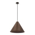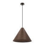 Lampa wisząca do spokojnej strefy wypoczynku Ta lampa wisząca wprowadza do wnętrza ciepłe, wyciszające światło sprzyjające wieczornemu odpoczynkowi. Fornirowany, mahoniowy abażur podkreśla naturalny charakter salonu lub sypialni. Prosta forma pomaga utrzymać wrażenie porządku w przestrzeni dziennej. Dzięki jednemu źródłu światła łatwo kontrolować nastrój po zachodzie słońca. Oświetlenie nad stół w salonie lub jadalni Stożkowy kształt kieruje strumień światła na blat stołu podczas posiłków. Średnica 33 cm sprawdza się przy średnich stołach rodzinnych, bez oślepiania siedzących osób. Zwis o wysokości do 120 cm pozwala zawiesić lampę niżej nad stołem, pozostawiając swobodę ruchu. Brązowy fornir dobrze współgra z drewnianymi blatami, ocieplając kącik jadalniany w przestrzeni otwartej kuchnia–salon. Kierunek świecenia i komfort domowego światła Abażur z forniru przepuszcza światło łagodnie, ograniczając ostre kontrasty wieczorem. Otwarty dół klosza tworzy skoncentrowaną plamę światła na stole lub wyspie kuchennej. Gwint E27 umożliwia dobór mocy i barwy żarówki do czytania, pracy lub kolacji. Pojedynczy punkt świetlny ułatwia zbudowanie strefy oświetleniowej niezależnej od reszty pomieszczenia. Rozwiązanie do ciepłych, naturalnych wnętrz Ta lampa wisząca sufitowa sprawdzi się w pomieszczeniach, gdzie oczekiwane jest skupione, ale przytulne światło. Drewniany fornir mahoniowy tworzy spójny akcent w salonach i jadalniach urządzonych w spokojnych, naturalnych barwach.