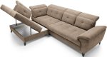 Rohová sedacia súprava Inferne predstavuje vysoko sofistikovaný a pohodlný nábytok, ktorý do vašej obývačky prináša harmóniu luxusu, elegancie a praktickosti. a úľavu od napätia. Operadlo s čalúnickými pásmi a penou T2130 garantuje dlhú životnosť a odolnosť proti deformáciám, zachovávajúc súpravu v perfektnom stave aj po rokoch používania. nenápadne integrovaný do konštrukcie. Čierne kovové nohy podčiarkujú moderný vzhľad a dodávajú celej súprave ľahkosť a šmrnc.