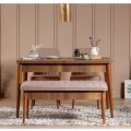Jedálenský stôl má štíhly a minimalistický dizajn, s šírkou 130 cm, ktorý sa predlžuje na 165 cm pre väčšie stretnutia. Stoličky a lavica poskytujú pohodlné sedenie s výškou sedadla 45 cm pre stoličky a 51 cm pre lavicu. Úložná jednotka ponúka praktický úložný priestor pre vaše jedálenské potreby.