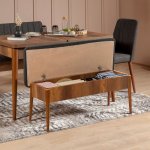 Jedálenský stôl má štíhly dizajn s kombináciou orechovej a antracitovej farby, čo mu dodáva moderný a rustikálny vzhľad. Hrúbka 18 mm a materiál stoličiek z ľanovej tkaniny poskytujú pohodlie a trvanlivosť, čo zabezpečuje, že vy a vaši hostia si môžete užívať dlhé jedlá so štýlom.