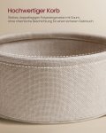 Konstrukcia kombinuje laminovanú drevotriesku s pevným oceľovým rámom, čo zaručuje stabilitu a dlhú životnosť. Moderný dizajn s guľatou doskou a textilným košom vniesť do priestoru elegantný a funkčný prvok, ktorý ľahko doplní akýkoľvek interiér.