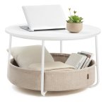 Tento moderný konferenčný stolík je ideálnou voľbou do obývacej izby, kde spája štýl a praktické využitie. Vďaka guľatému tvaru o rozmeroch 75 × 75 × 45 cm poskytuje dostatok priestoru pre oddych, prácu či zábavu. Stolík je vybavený dvojvrstvovým textilným košom, ktorý ponúka objem 58 litrov a umožňuje pohodlne uložiť deky, vankúše, knihy a ďalšie drobnosti, ktoré chcete mať po ruke, no zároveň udržať poriadok.