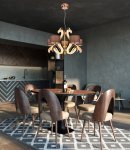 Mimoriadne elegantná závesná lampa, pozostávajúca z troch ramien, v ktorých sú LED pásy nenápadne ukryté pod matnými bielymi krytmi. Každé rameno je navyše vybavené tienidlom z husto tkaného materiálu, pod ktorým výrobca navrhol priestor pre hlavný zdroj svetla v podobe 3 žiaroviek. V ramenách za akrylovým krytom je skrytá nevymeniteľná LED dióda s výkonom 18,4 W. LED dióda a 3xE14 sa rozsvietia súčasne. Ramená sú starostlivo dokončené lesklou štruktúrou imitujúcou priehľadnosť prvku a hnedé tienidlá vytvárajú štýlovo ucelený celok. Kombinácia niekoľkých samostatných svetelných zdrojov robí z lampy jedinečnú, neopakovateľnú svetelnú kompozíciu. Teplé LED svetlo znamená, že lampa použitá v obývačke alebo spálni umožní používateľom plne relaxovať. Ovládanie zabezpečuje jednoobvodový nástenný vypínač, prepínanie sa vykonáva rytmicky postupnými vypínačmi ZAP/VYP. Ďalšie produkty zo série Ambrosia, v podobe stojacej lampy a nástenných lámp, vám umožňujú osvetliť zvyšok miestnosti v ucelenej a celistvej podobe.