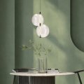 Ta lampa wisząca tworzy spokojne, stałe oświetlenie nad stołem używanym przez cały dzień. Szklane, bezbarwne klosze nie zamykają przestrzeni, więc wnętrze pozostaje wizualnie lekkie. Ciepła barwa światła sprzyja zarówno porannym posiłkom, jak i wieczornym rozmowom przy stole. Regulowana wysokość zawieszenia pozwala dostosować oprawę do stołu w kuchni lub jadalni.