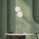 Model od Studio sprawdzi się w uporządkowanych, funkcjonalnych wnętrzach nastawionych na codzienne, wspólne posiłki. Konstrukcja z dwoma szklanymi kloszami pasuje tam, gdzie potrzebne jest równomierne, ciepłe światło skupione na części jadalnianej.