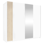 Zrkadlo na dverách nielen že uľahčuje každodenný výber oblečenia, ale aj opticky zväčšuje priestor miestnosti a dodáva nábytku nádych elegancie. Kombinácia policovej a vešiakovej časti zaisťuje prehľadné uloženie oblečenia, doplnkov i ďalších predmetov. Posuvné dvere potom umožňujú jednoduchú manipuláciu a šetria miesto, čo robí skriňu ideálnou voľbou aj pre menšie priestory.