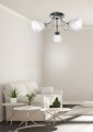 Kombinácia strieborného podstavca a bielych sklenených tienidiel je kľúčom k jeho univerzálnosti.
