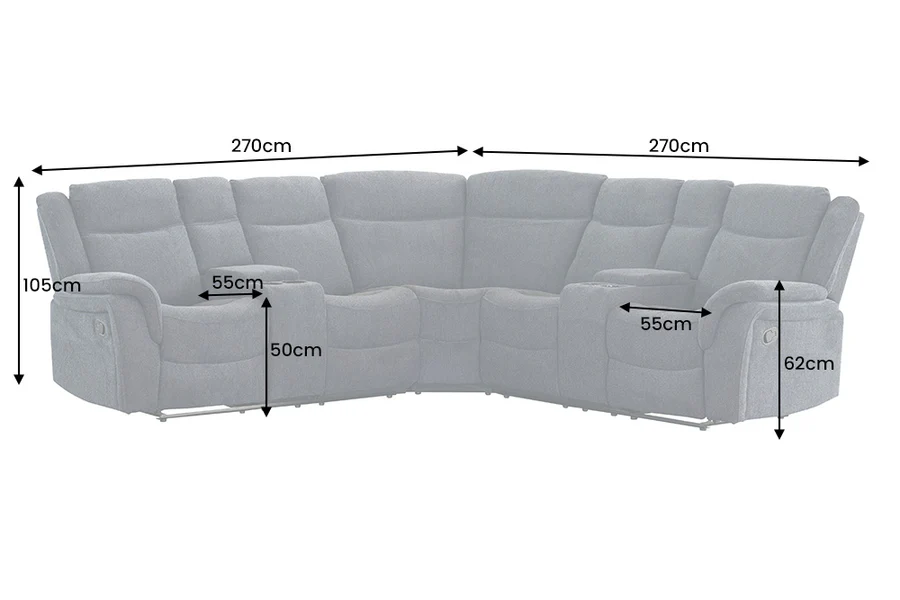 Dve vonkajšie sedacie časti sú vybavené výklopnými opierkami nôh, ktoré sa ovládajú pomocou bočných úchytov. Zároveň je možné dve krajné operadlá sklopiť dozadu, čo umožňuje prispôsobiť si polohu presne podľa vašich potrieb. Pre správne fungovanie polohovacích mechanizmov sa odporúča ponechať za pohovkou voľný priestor približne 70 cm.