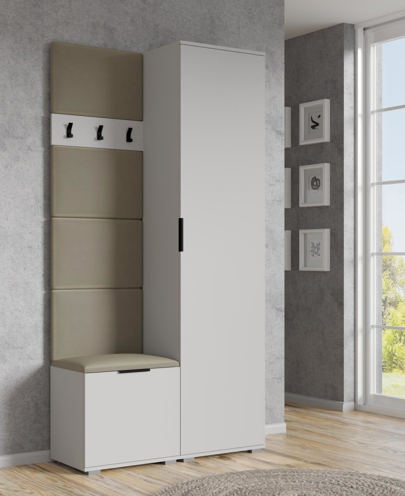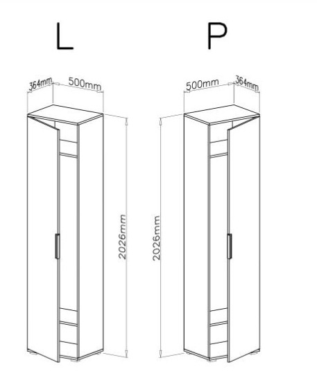 Jedným z komponentov je úzka skriňa SL 50, ktorá ponúka dostatok priestoru pre Vaše bundy a kabáty v podobe vešiakovej tyče a dvoch políc. Dvierka je možné umiestniť na pravú aj ľavú stranu.