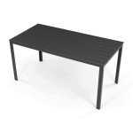 Stôl s rozmermi 156 × 78 cm má dosku z polywoodu, materiálu odolného voči poveternostným vplyvom a ľahko udržiavateľného, ktorý verne imituje vzhľad dreva. Pevná kovová konštrukcia zaisťuje stabilitu a dlhú životnosť celej zostavy.