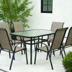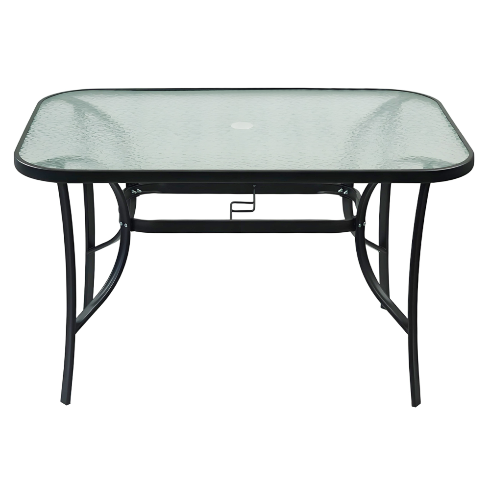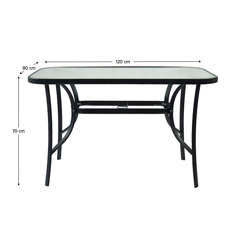 Záhradný piknik môže začať! Máte však kam odložiť grilované jedlo? Pokiaľ premýšľate, kde nájsť praktický a štýlový stôl na vašu záhradu, jedálenský stôl DEMAT NEW je tou pravou voľbou. Tento moderný stôl je vyrobený z kvalitného tvrdeného skla a stabilnej čiernej ocele, čo zaručuje jeho dlhú životnosť aj jednoduchú údržbu.